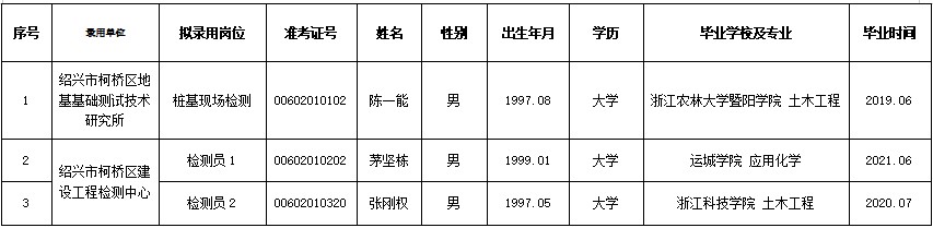 紹興市柯橋區(qū)建設(shè)集團(tuán)有限公司下屬企業(yè)擬錄用人員公示